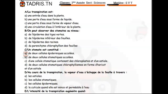 11-02-2024 serie exercices la transpiration