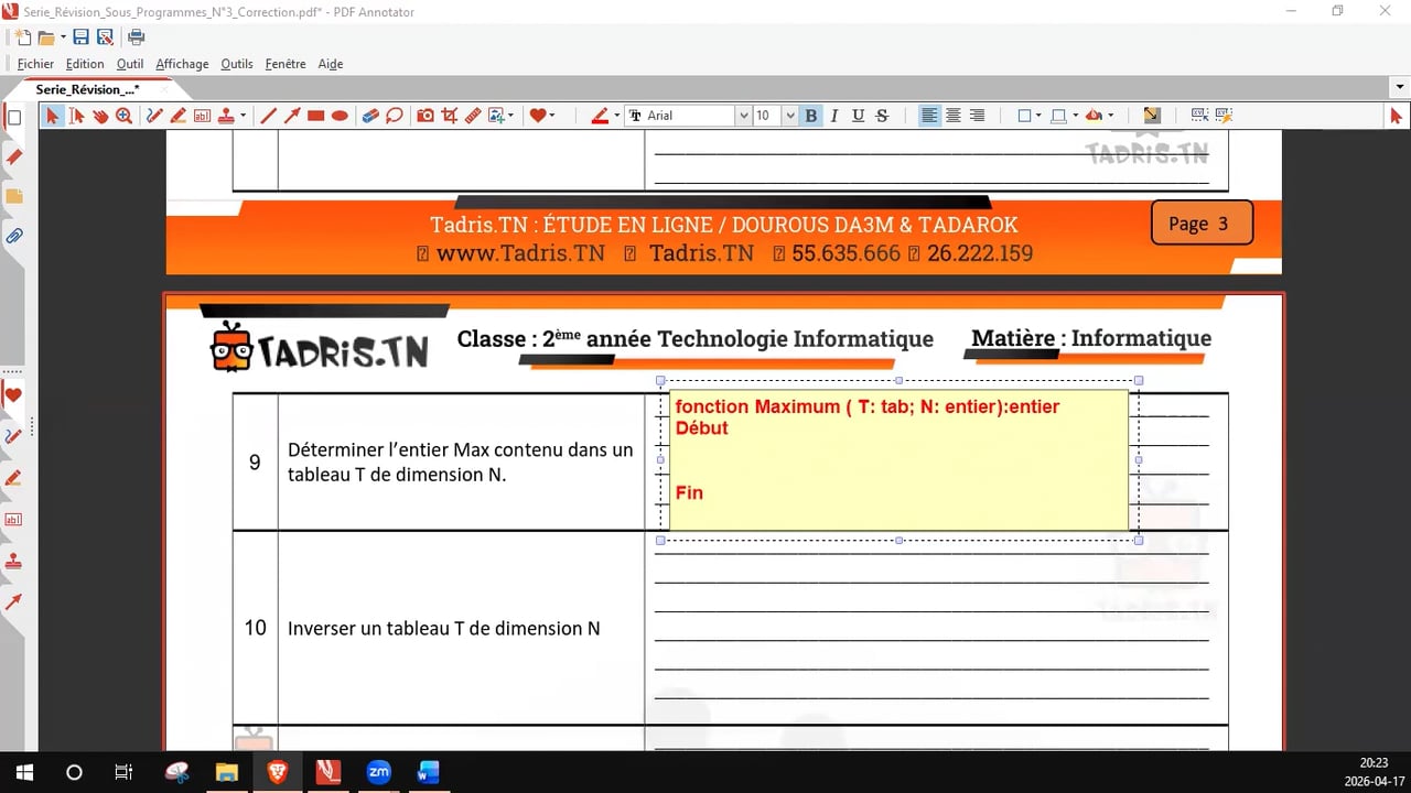 Cours et Résumés, Séries et Devoirs avec correction, Document de révision, etc En Papier Imprimé