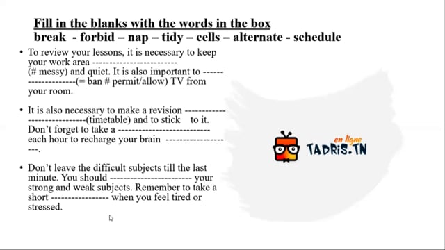 دروس و تمارين في شكل فيديوات ▶️ في جميع المواد بالإضافة إلى الحصص 📺 المباشرة الأسبوعيّة.