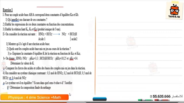 03-02-2026 correction série des exercices : pH d’une solution Acide & base - diode Zener - transistor bipolaire cours + application