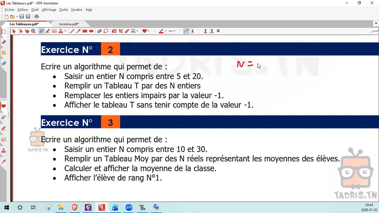 09-01-2026 Les tableaux _ Correction Exercice 3