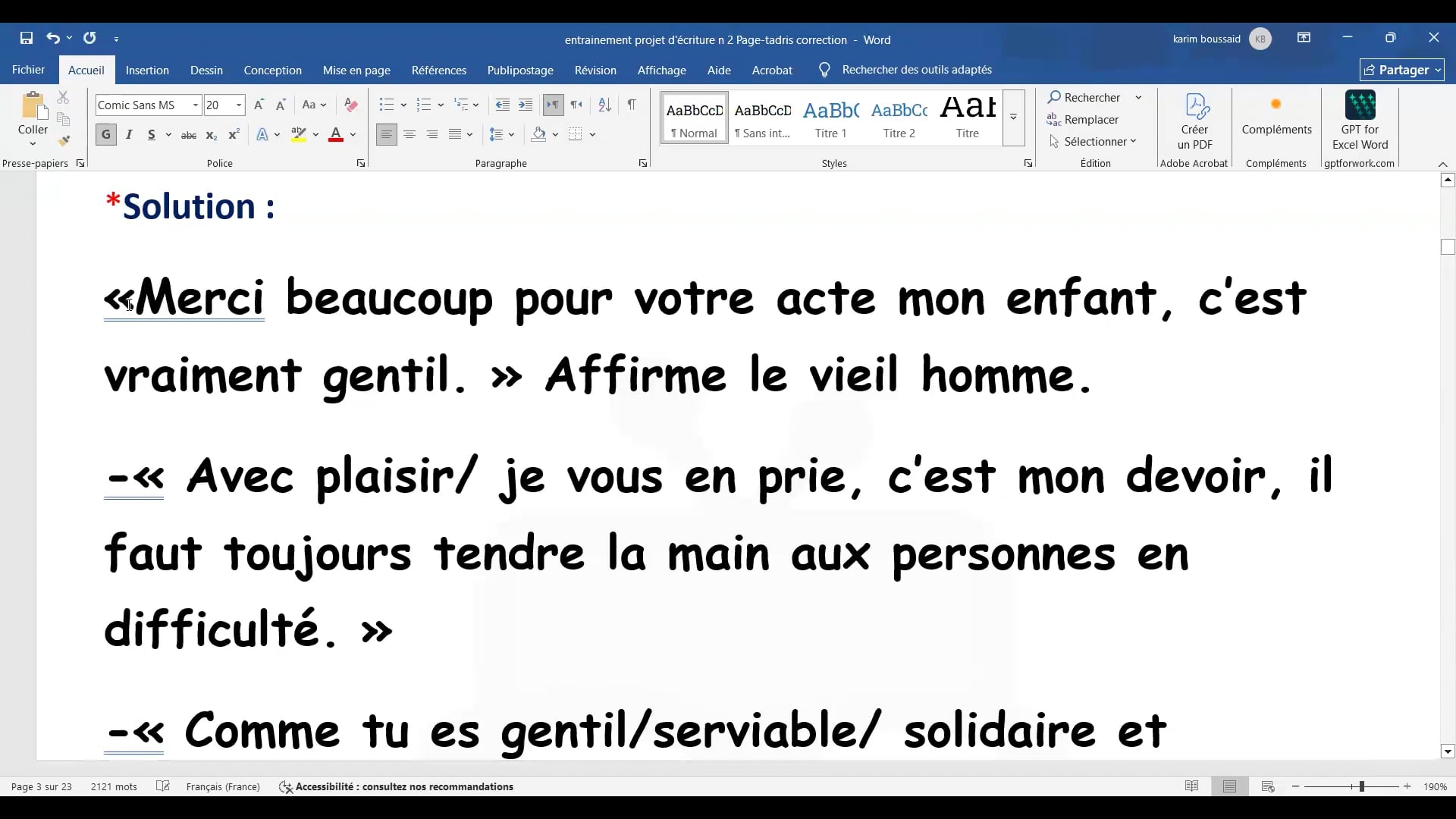 25-01-2026 Aidons et respectons les autres | Projet d’écriture | Correction