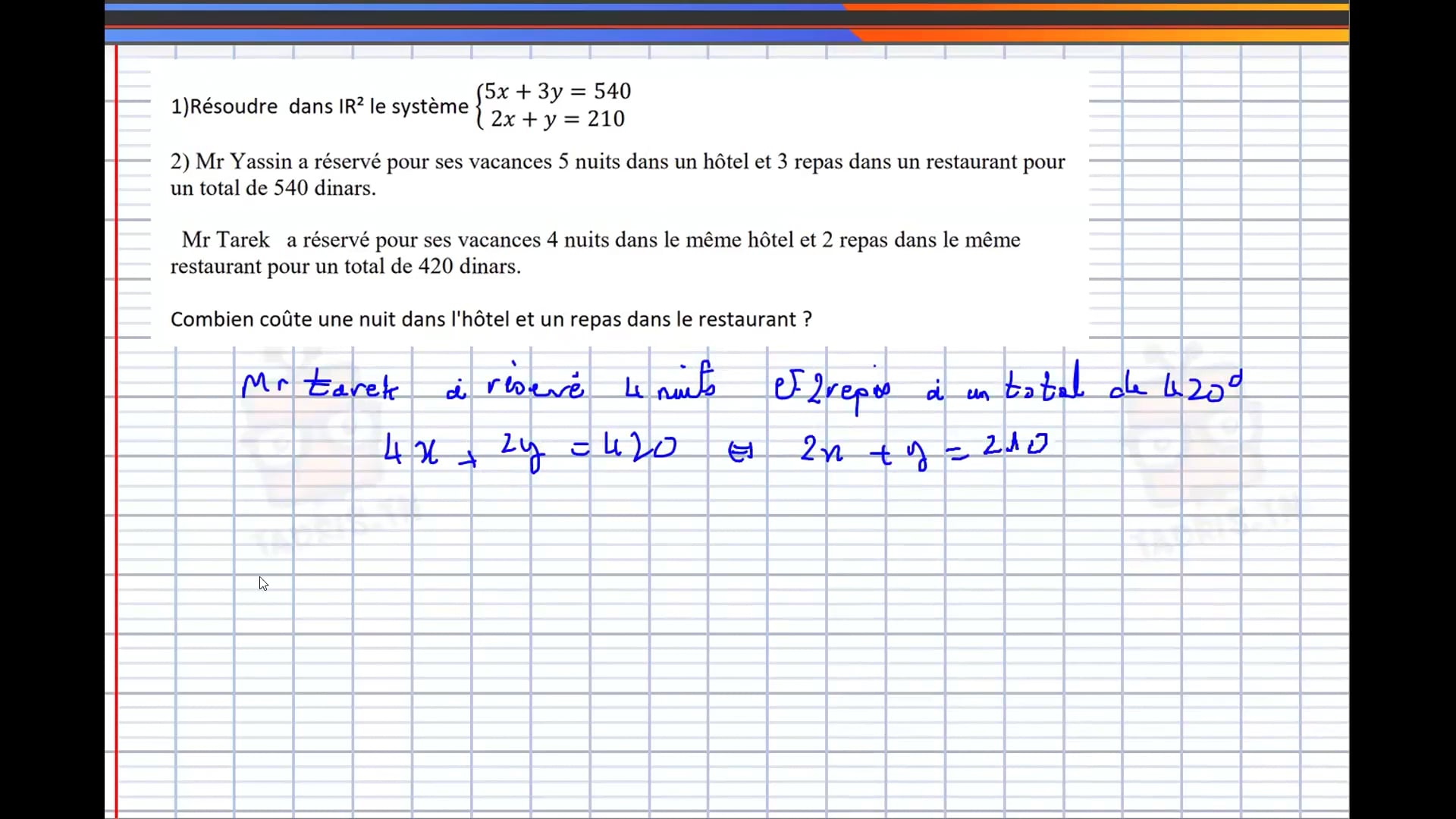08-04-2026 Systèmes de deux équations à deux inconnues
