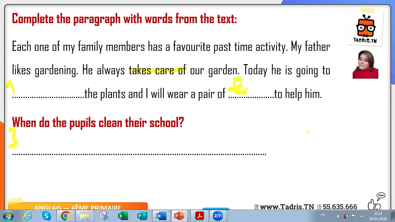 20-01-2026 Caring: reading comprehension + vocabulary+ language (present simple+future+possessive adjectives +comparative +superlative) +writing