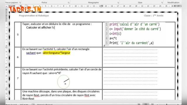 TP1:Initiation à la programmation Python Découvrir les instructions : input print int( )